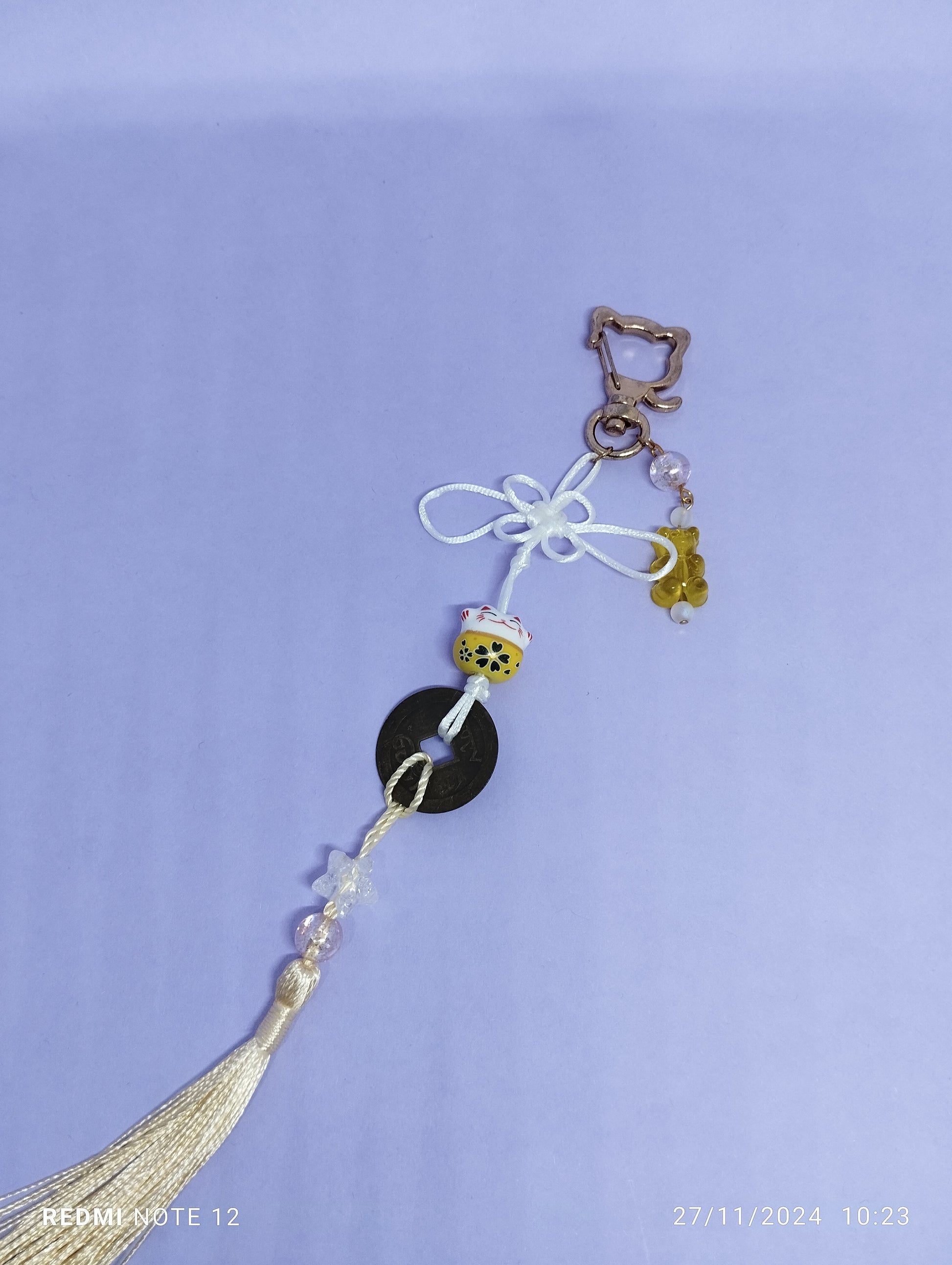 Porte clé d'inspiration mode coréenne en perles diverses et cabochon en résine